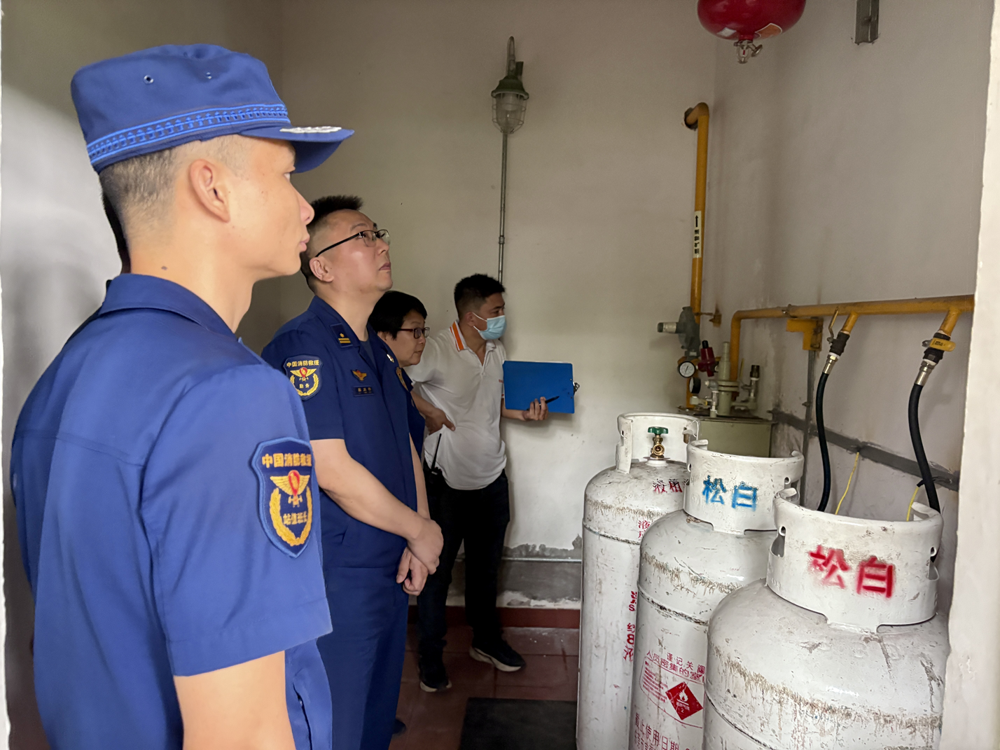 联合检查组检查消防水泵房及燃气房。