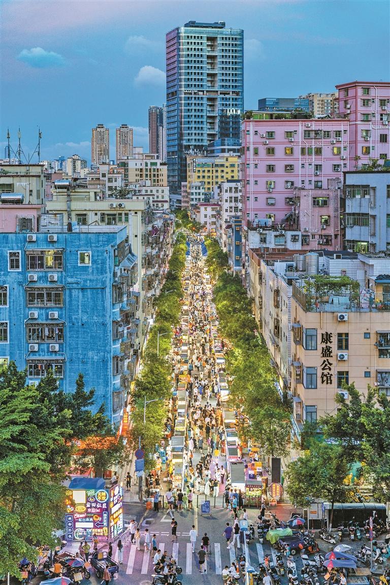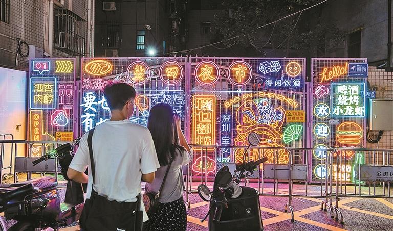 都说人间烟火气,最抚凡人心。华灯初上,整整齐齐的两排美食摊位前,已经聚满了游人。武汉热干面、荆州锅盔、遵义小吃、四川麻辣烫、湛江烧烤、柳州螺蛳粉……百余个店铺里,天南地北的美食吸引大家前来品尝,大家在美食中一解乡愁,感受深圳文化的包容与多元。