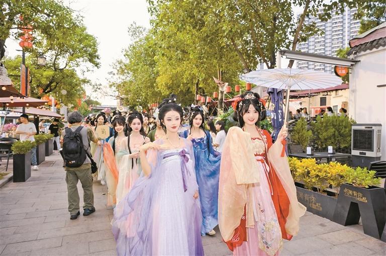 穿汉服、逛古墟、体验国风游戏……这场古风之旅,让清平古墟成为体验历史与国风文化的绝佳之地。作为深圳“四大古墟”之一的清平古墟,已有300多年的历史,本次国风文化活动周不仅带来了丰富的汉服体验活动,还让古墟的文化魅力焕发新生。文昌塔的修复重建成为本次活动的一大亮点。作为曾经清平古墟的标志性建筑之一,文昌塔自上世纪50年代拆毁后,首次进入大众视野。它曾与永兴桥、广安当铺一起,见证了清平古墟的繁荣历史。此次活动,汉服同袍们绕塔而行,再现了古韵与今风的交融,仿佛让清平古墟的历史重新流转。