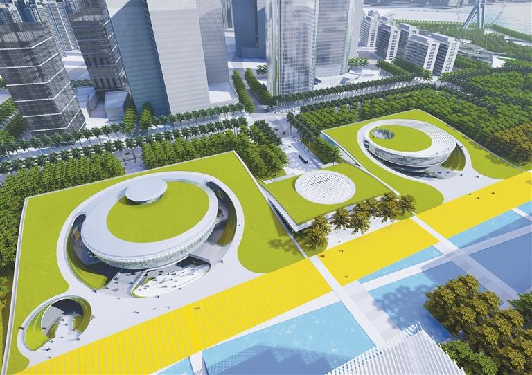 深圳书城湾区城(含湾区民俗馆)效果图。