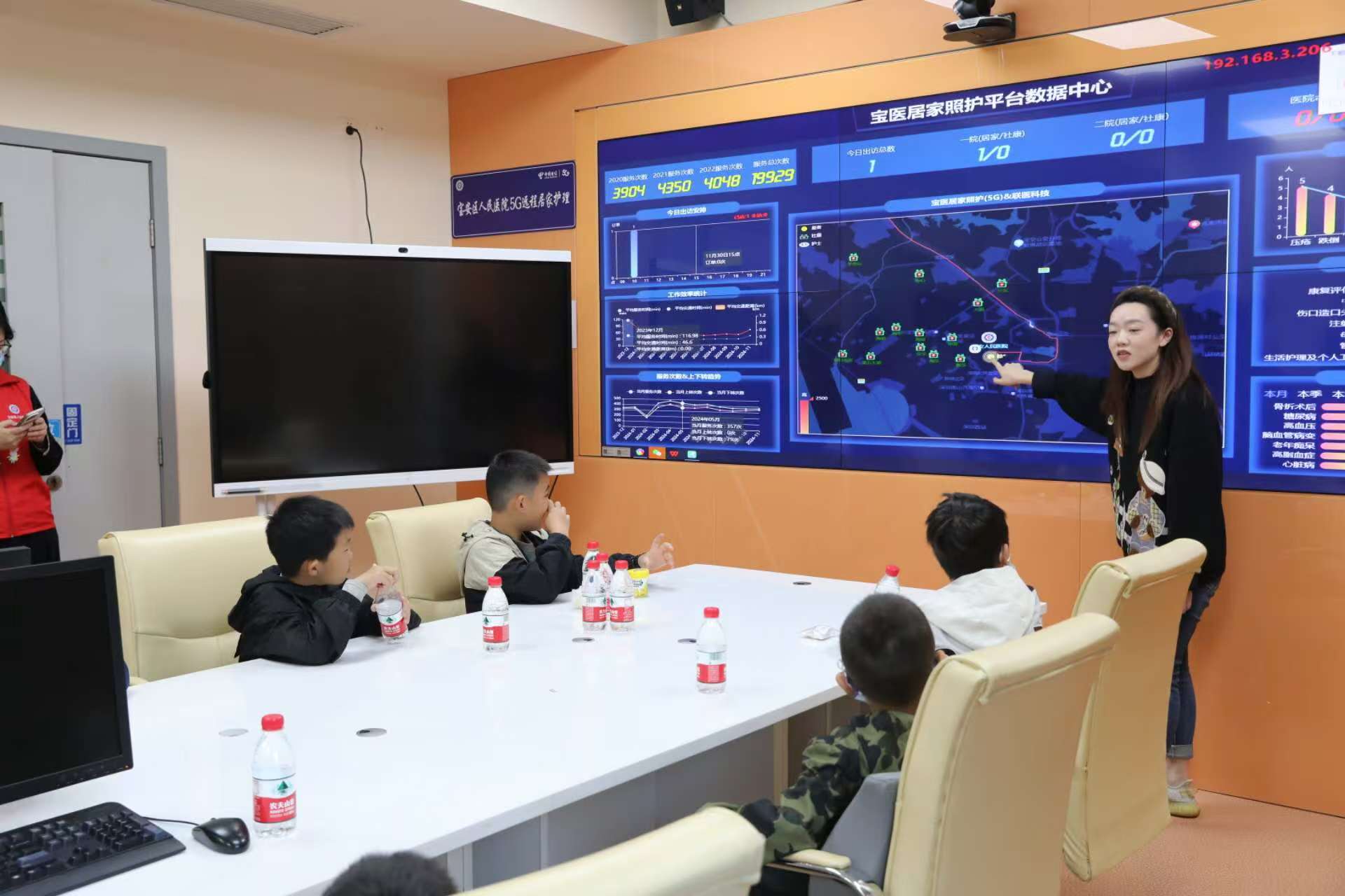 在居家医疗服务部,“小医生”们了解了“互联网+老年居家医疗服务”的便利性。