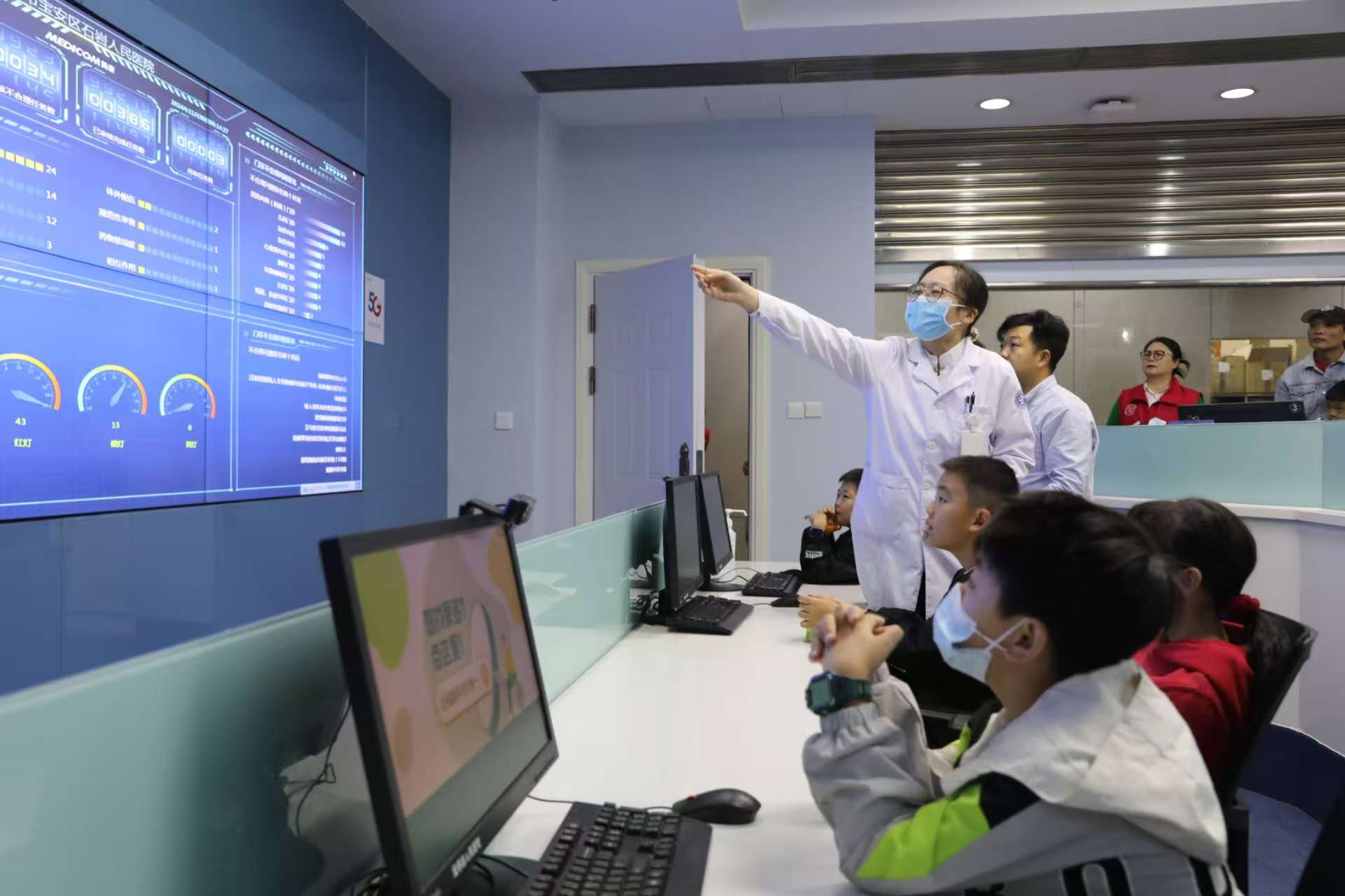 在港澳居民健康服务中心,“小医生”们了解了服务中心为港澳居民提供的特色服务和便利措施。