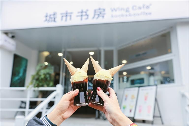 城市书房WING CAFE地理位置优越,毗邻壹方天地,书房面积约有200平方米。装修风格是流行的“INS风格”,简约小清新。“闲下来看看书,再喝上一杯咖啡,舒服又惬意。”打卡过的小伙伴对这家书房咖啡馆赞不绝口。这里有大众喜爱的海盐碧根果燕麦拿铁、柚见等饮品,还有咖啡馆招牌特色——小黑。它由下层美式制成的“果冻”+上层香草冰激凌组成,另外还配有两个蛋卷“角”,口感甜而不腻,还十分“上镜”,含咖量和甜品度直线爆表。