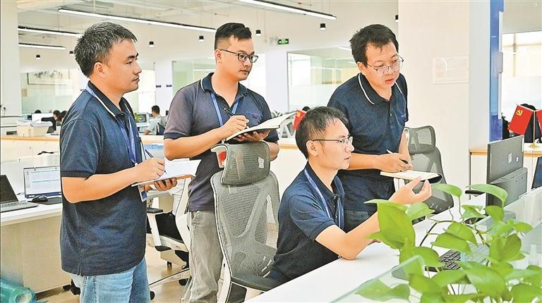 ▲富程威运营部一部工作人员交流工作。