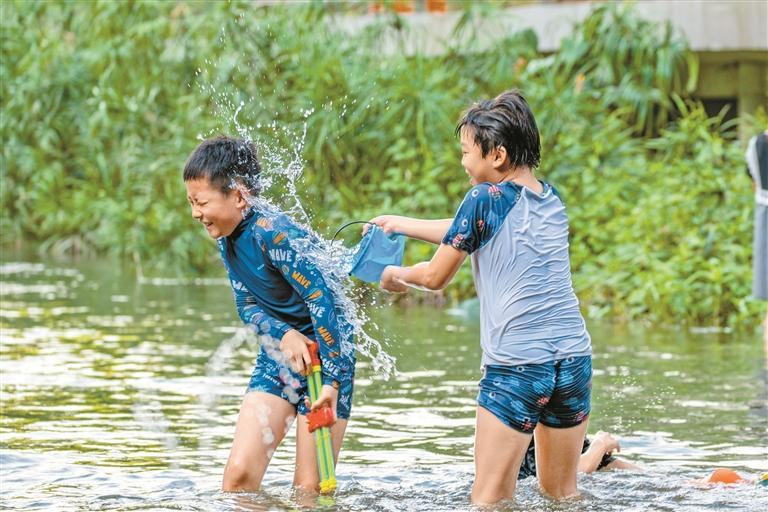 儿童在西乡河上游玩耍。