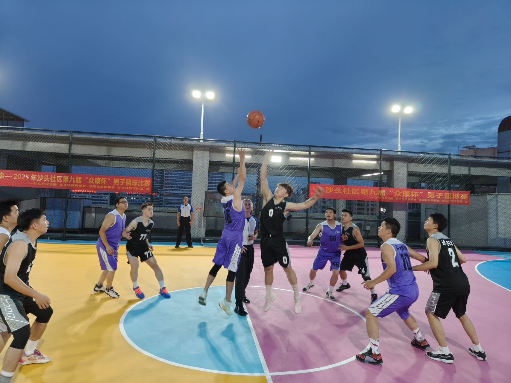 6月27日晚,华灯初上时,沙井京基百纳广场屋顶热闹非凡。“云端对决 篮动沙井”百纳天空篮球场亮相,2025年沙头社区第九届“众康杯”男子篮球赛开赛,标志着沙井京基百纳广场精心打造的天空篮球场正式对外开放。