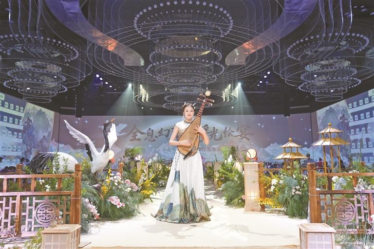 发布会上,一场穿越时空的“宋宴”沉浸式展演成为焦点。在全息技术动态还原的《清明上河图》背景下,传统婚俗礼仪与现代光影艺术完美交织:从“出阁梳妆”的细腻光影刻绘到“八抬大轿”的场景再现,配合高端粤菜盛宴,生动诠释了“科技为形、文化为魂”的创新逻辑。