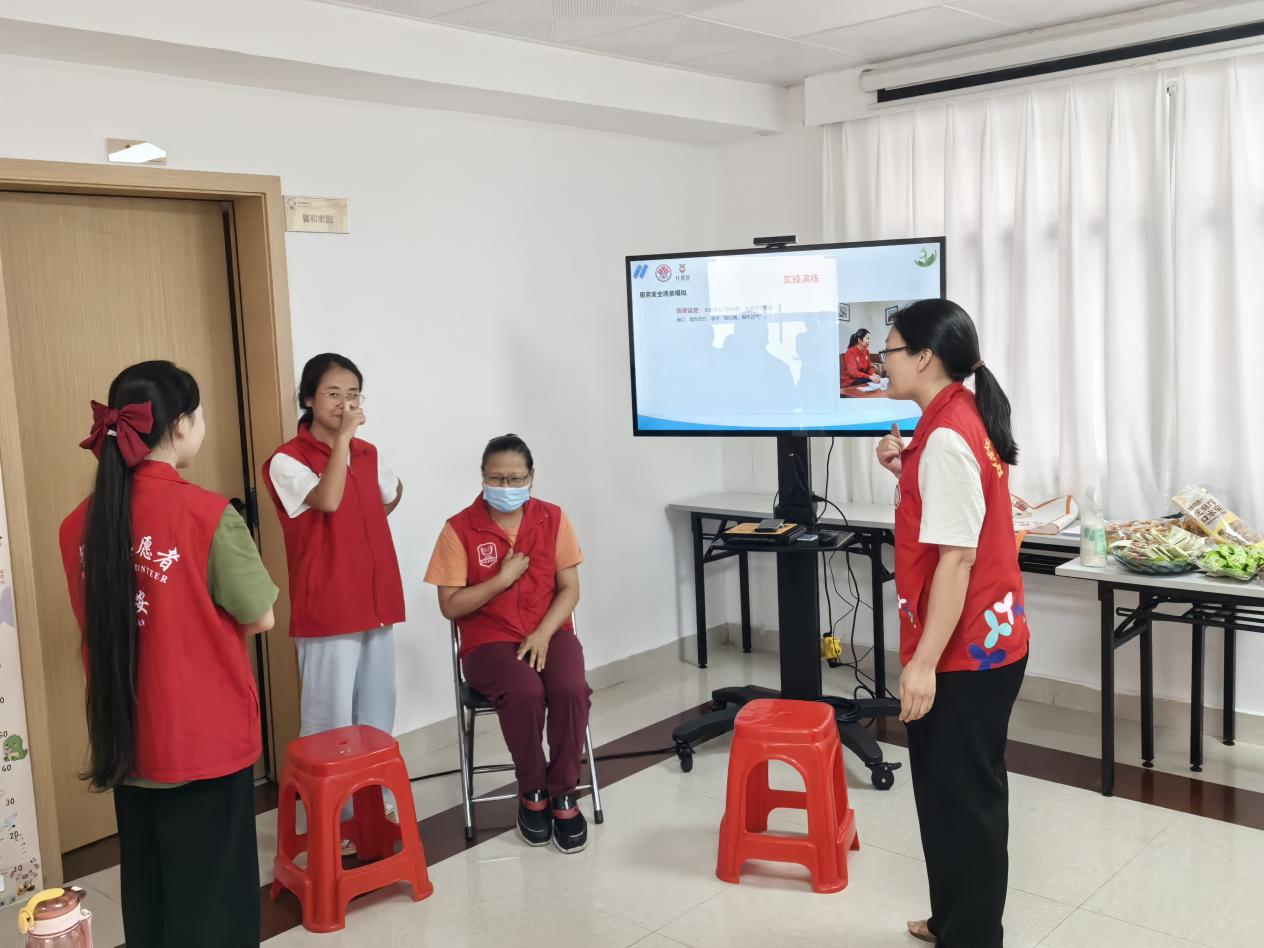 在互动环节,新老志愿者积极互动交流,老志愿者分享服务心得,新志愿者则带来了新颖的服务思路,实现“老经验”与“新力量”的融合。在实践演练环节,社工将志愿者分组模拟演练,分别演练了独居老人突发疾病、情绪低落等场景,让志愿者通过角色扮演,切身感受志愿服务中的安全挑战并学习应对之策。