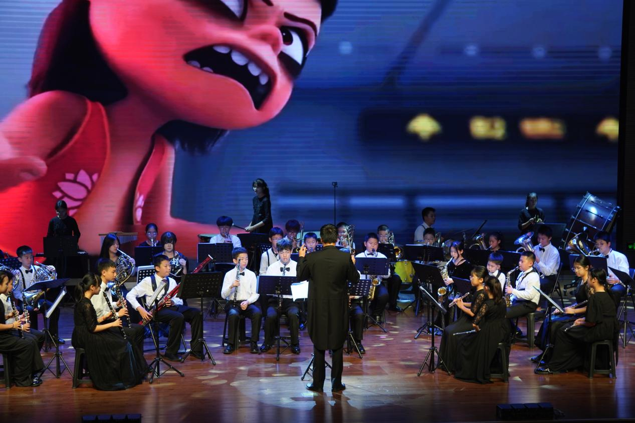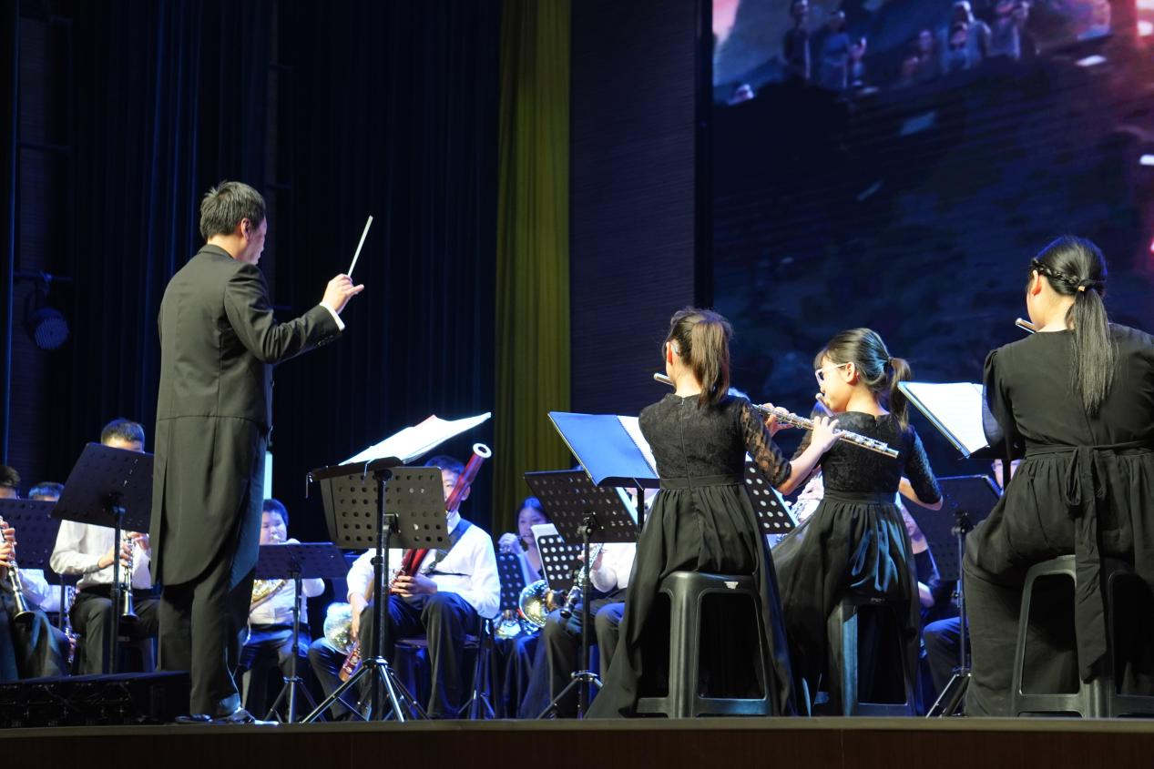 音乐会的核心亮点,是由新安街道精心培育的一支青少年管乐艺术团。从稚气未脱的小学员到技艺渐臻成熟的中学生,他们身着整齐的演出服,自信地站在聚光灯下。整场演出曲目丰富多元,既有《印第安纳组曲》等经典交响乐片段,也有《我只在乎你》《万水千山总是情》等充满时代气息和中国韵味的管乐作品,还有今年盛行的《就是哪吒》《我乃哪吒三太子》等原创佳作,以及大量的动漫经典曲目。学员们精准的节奏把控、和谐的音色融合以及对音乐情感的细腻表达,赢得了现场观众经久不息的掌声。