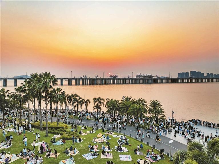 依托滨海资源,前海将桂湾公园、前海石公园等生态空间与商业载体无缝衔接,“以景带商、以商促游”模式成效显著。数据显示,前海公园2023年、2024年总客流量分别达190万人次、195万人次;2025年上半年工作日日均客流8000人次,周末及节假日更是突破2万人次,成为市民休闲新地标。
