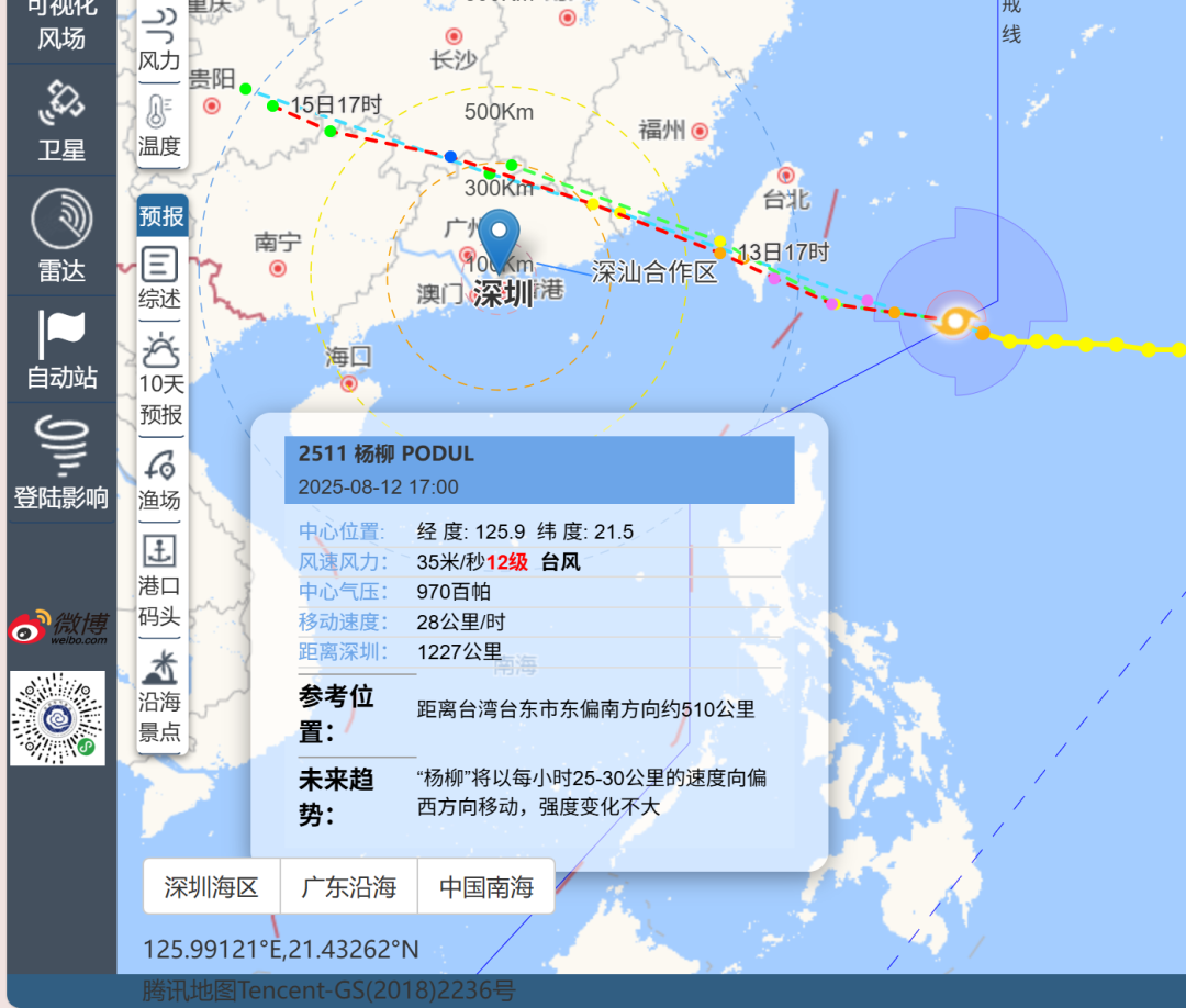 但是,“杨柳”二次登陆后路径尚存分歧,对深圳的影响关键取决于其登陆后是穿越广东北部还是中部。