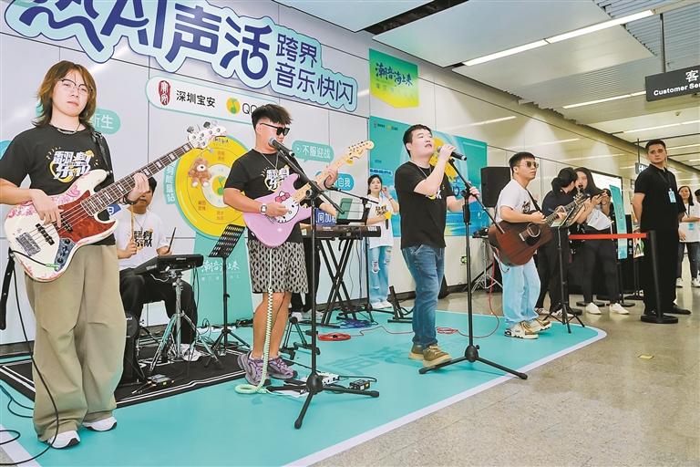 9月12日,潮音海上来“热AI声活”跨界音乐快闪在宝安区翻身地铁站站厅内上演。“潮音海上来”是宝安区创新打造的音乐文旅IP,以音乐为媒介,持续为市民、游客提供更具魅力的滨海文化体验。
