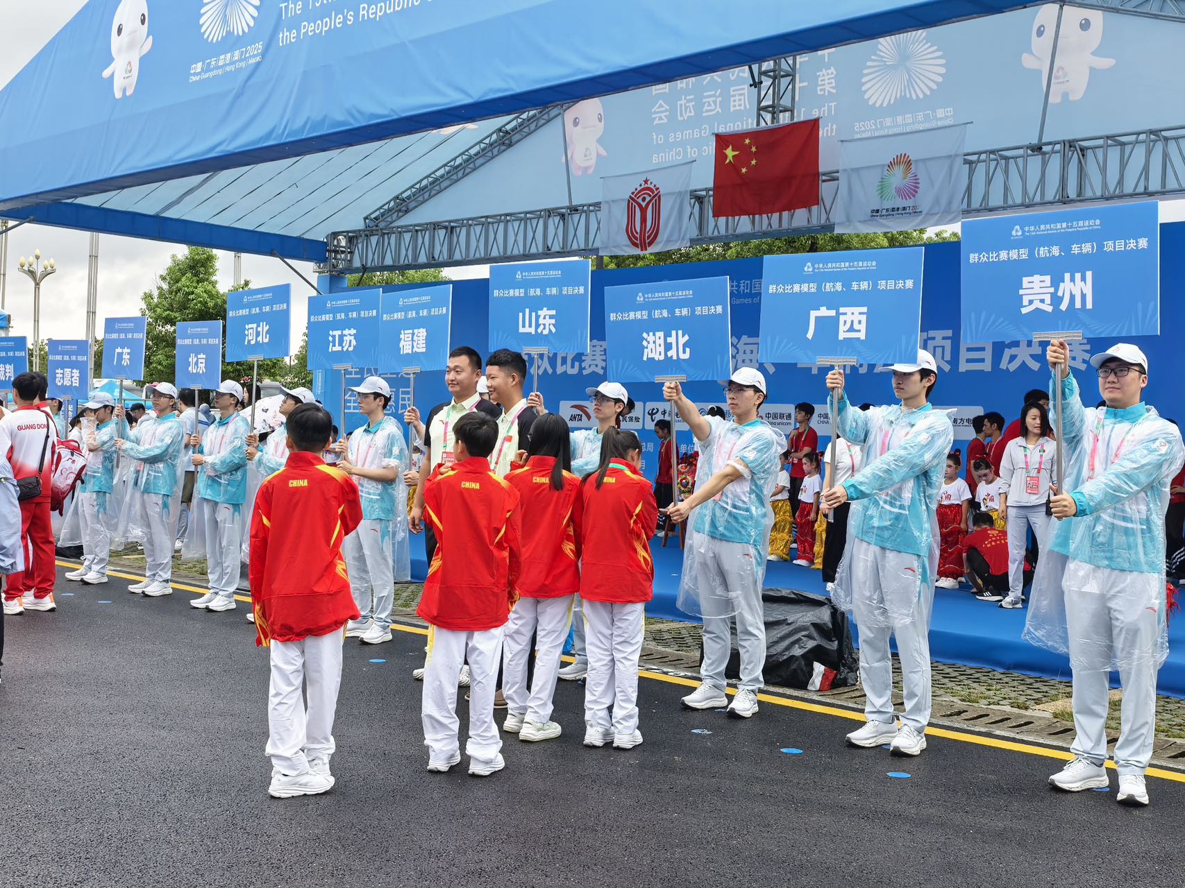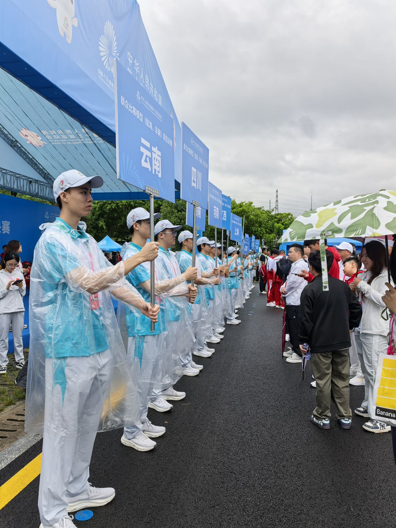 作为赛事服务保障的中坚力量,深职大志愿者团队展现出高度的组织力和执行力。凌晨5:30,志愿者们已在校园集结完毕;6:20,全员准时抵达五指耙水库赛场;6:50,按照既定分工,志愿者们迅速、有序地投入到各自岗位。在开赛仪式前紧张的筹备阶段,志愿者们高效完成了运动员休息区、技术官员工作区及媒体采访区的物资分发与布置,并精准引导18支参赛队伍按地域类别有序入场列队。仪式过程中,他们全程待命,密切配合工作组指令,保障了各级领导致辞、运动员裁判员代表宣誓、宣布开赛等环节的衔接顺畅与流程无误。