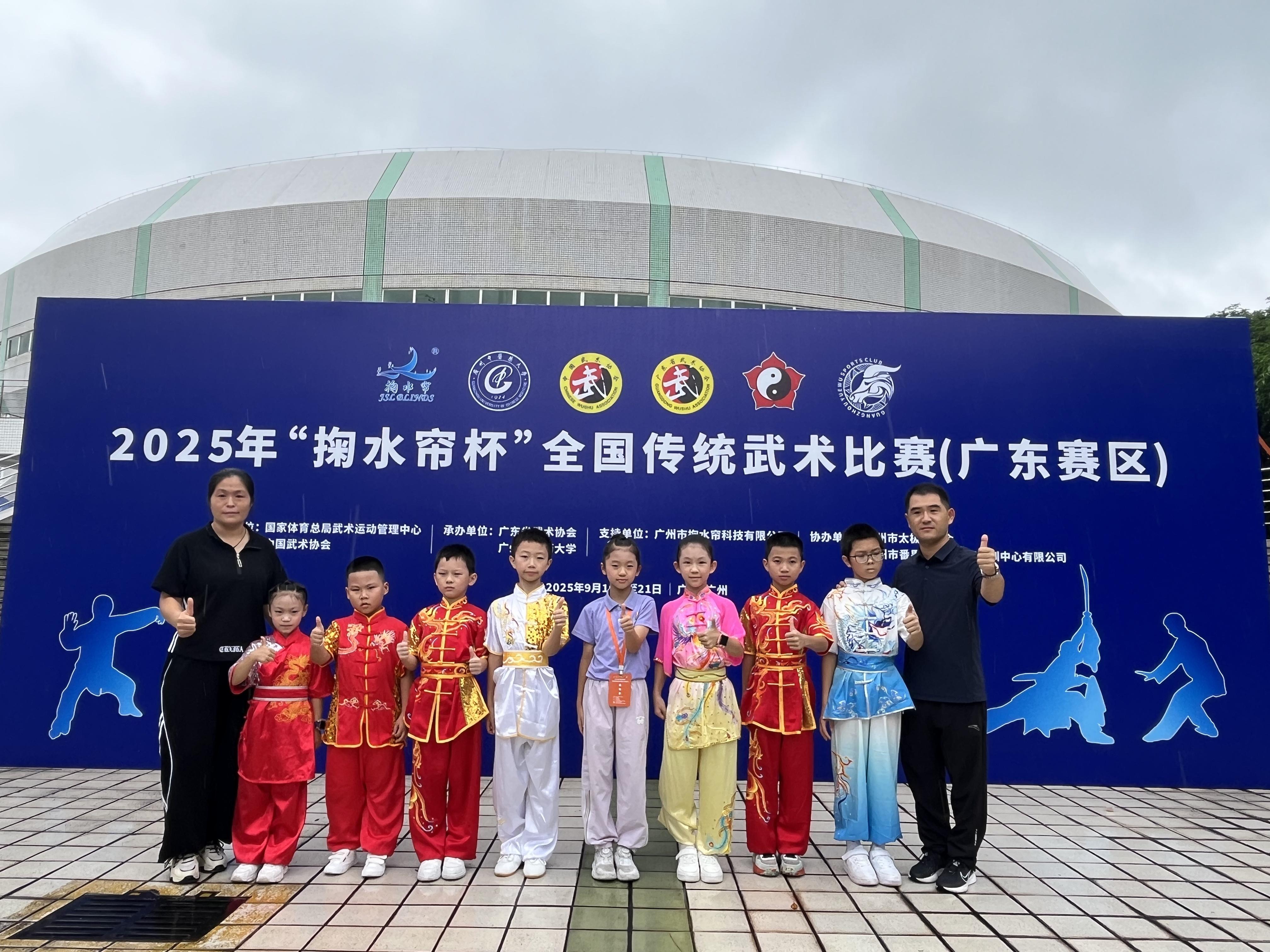 而在本次2025年“掬水帘杯”全国传统武术比赛(广东赛区)上,队员们也是充分展现高超技艺。其中,儿童A组选手马芷萱在梅花拳春秋大刀项目中以一套精湛高难度动作的表演,赢得全场最高分;裕安学校“小萌娃”李歆瑶凭借精湛的技艺,在比赛中脱颖而出,荣获金牌。
