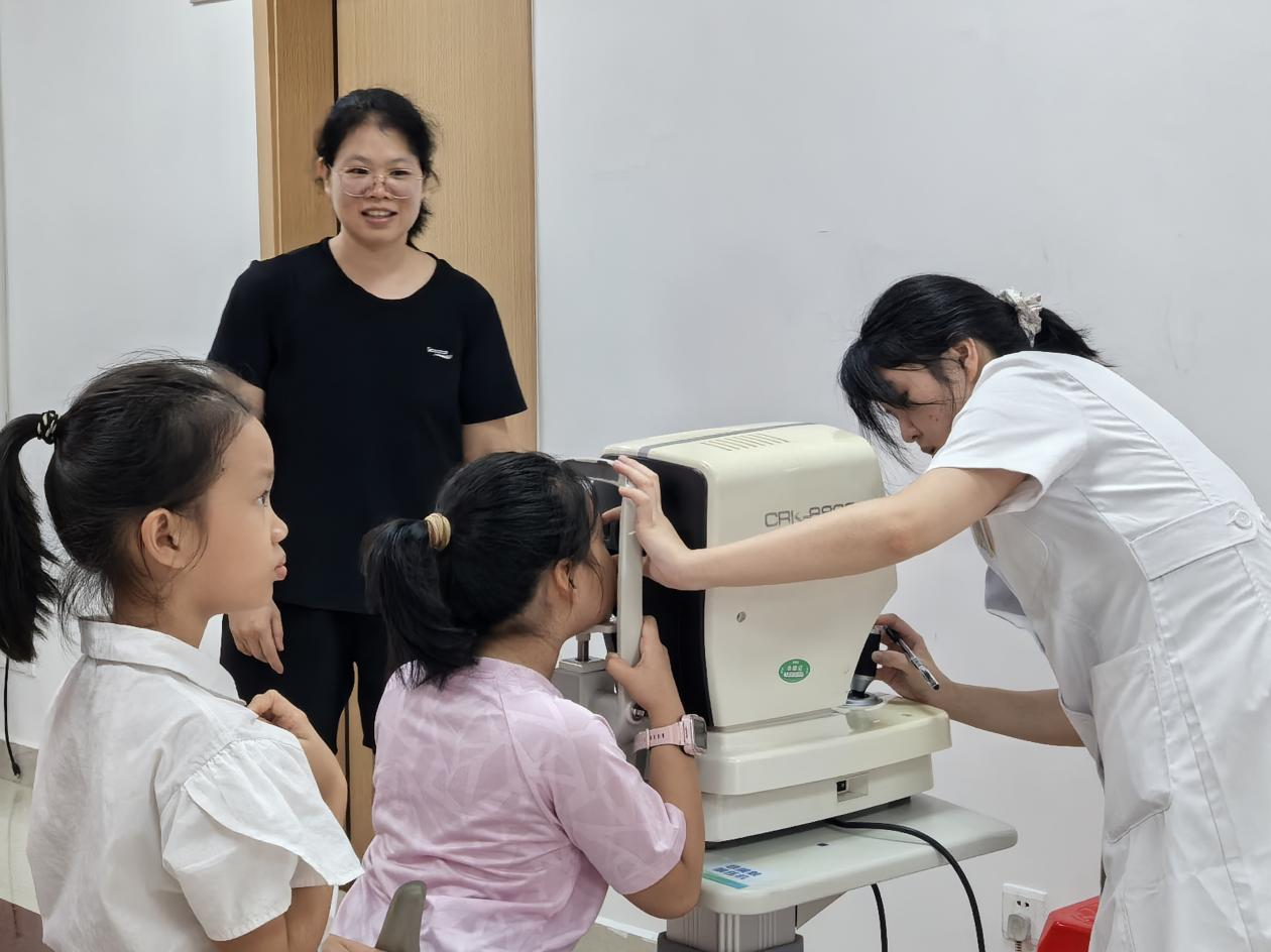 活动现场秩序井然,气氛活跃。在社工的引导下,孩子们分批进行了专业的视力检测。眼科医护人员不仅耐心细致地为每一位孩子进行了裸眼视力、电脑验光等基础检查,还针对部分视力异常或已有屈光不正史的孩子进行了更为深入的问诊和排查。