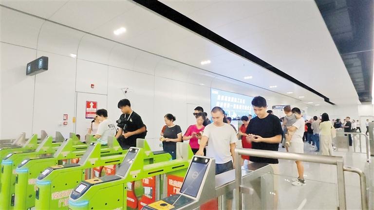 昨天11点18分,光明城地铁站外早已排起长队。碧眼社区居民黄先生刚从高铁站出来,经常出差的他高兴地表示,盼了两年,这条线终于开通了,此前从高铁站回家要么打车,要么坐公交,打车要十多块钱,坐公交加上等车的时间要半个多小时,有时候甚至要45分钟,有了地铁可太好了。