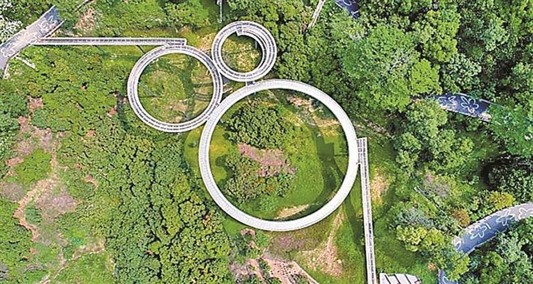作为深圳最具代表性的生态地标之一,虹桥公园的“网红飘带”——4公里红色空中栈桥颜值爆表,已成为市民拍照打卡的热门地点。公园以“生态+科学”为特色,集休闲、运动、科普于一体,是光明区的“森林氧吧”。