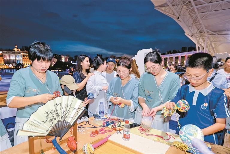 中秋佳节将至,中医药文化知识互动区里,养生与喜乐撞了个满怀。长廊下,印着秋季养生要点、常用药材名称、经典中医典故的灯谜随风轻摆,市民三三两两驻足揣摩,猜中后的集章声、兑换奖品的欢声笑语交织成趣。“名医问答”擂台前同样人头攒动,快问快答的形式将中医经典解读、日常养生常识化作鲜活考题。“既赢了奖,又学会了换季保养知识,这节过得真有意义!”年轻人小李说。