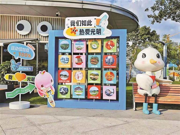 在红花山体育中心、深圳科学技术馆、明湖城市公园等场所,开幕倒计时互动游戏装置不仅详细介绍将在光明举办的全运会赛事,还融入了光明美景、美食等本土元素,经常吸引好奇的市民驻足互动。
