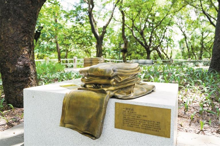 沿着龙华公园连接“一塔一廊一亭一碑,一街一台一池一馆”的园区环道悠然踱步,你就会与革命烈士纪念碑东侧的清风园不期而遇。这里“一核两区多节点”的布局结构极具巧思,一组特色鲜明的廉洁文化主题雕塑群与公园红色文化主题叠加融合,让原本普通的绿地变成了颇具特色的廉洁课堂。