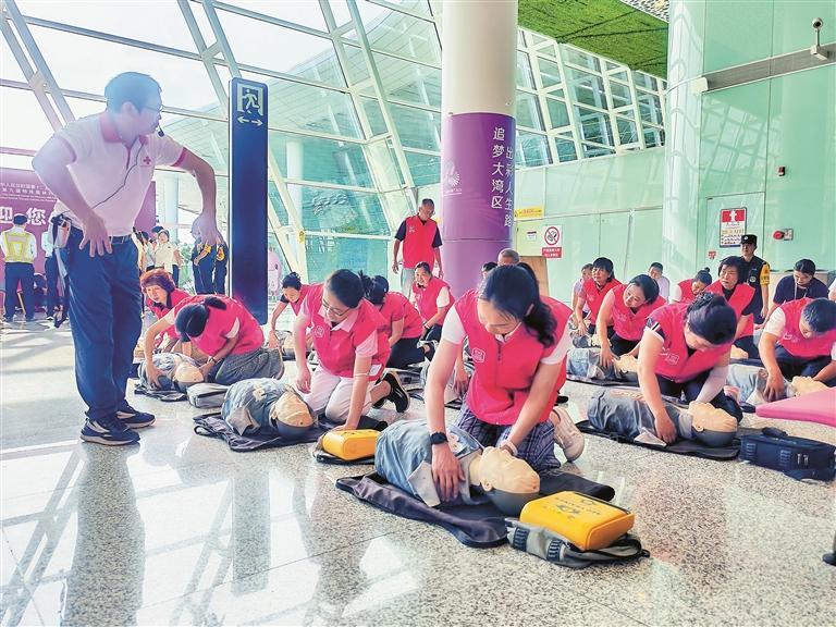 9月29日下午,十五运会和残特奥会深圳赛区机场抵离服务中心联合深圳机场集团、宝安区红十字会等多家单位,举办深圳机场赛会抵离服务中心急救与应急演练,众多赛会工作人员、志愿者现场参与急救培训及演练活动,以此全面提升赛事期间突发医疗事件的应急处置能力。