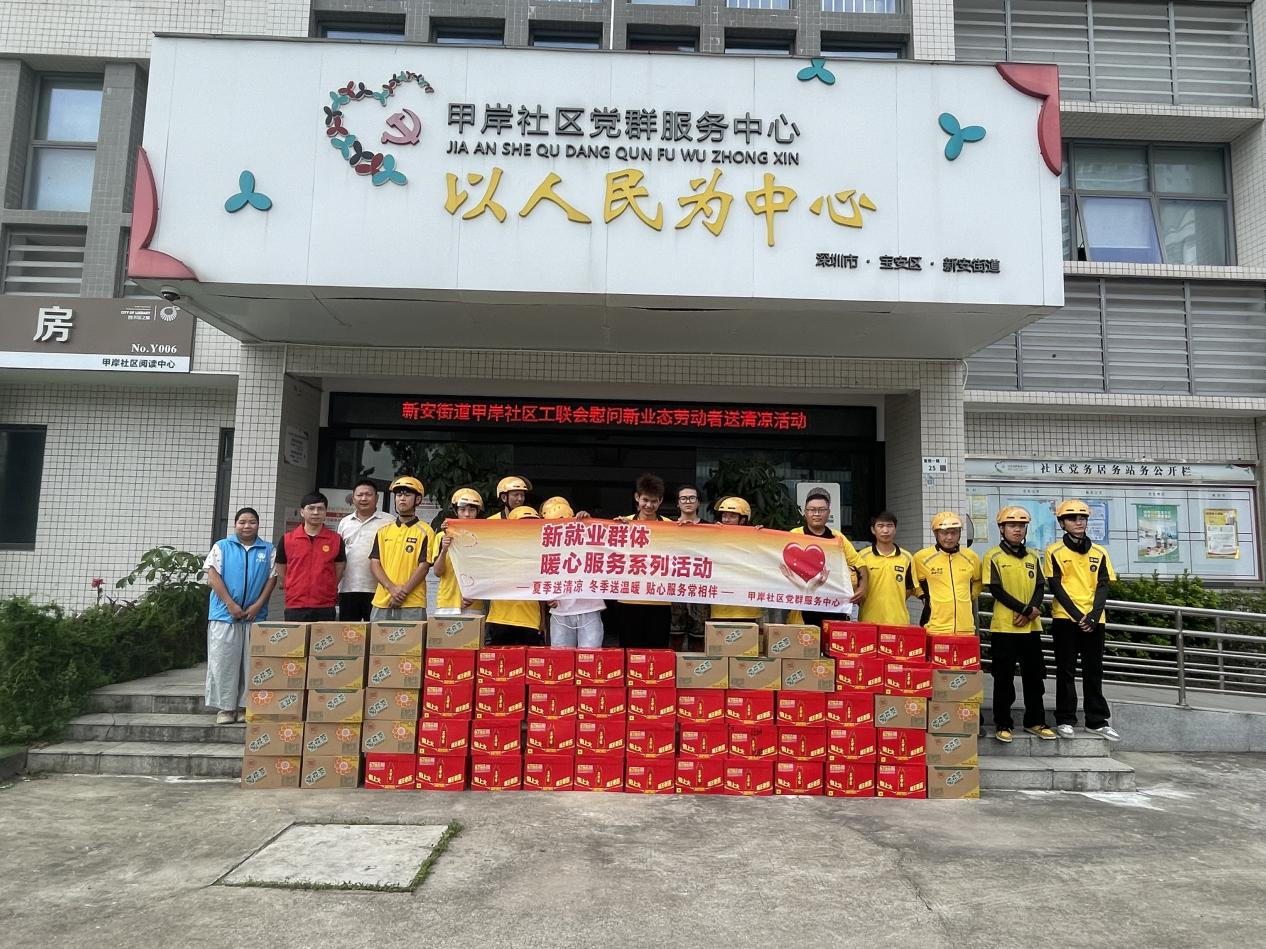为切实做好高温天气下新业态劳动者的权益保障工作,传递工会组织的关怀与温暖,9月29日,宝安区旭源社会工作服务中心联合甲岸社区工联会开展“炎炎夏日送清凉”慰问活动,为辖区内骑手送上王老吉凉茶与维他菊花茶等清凉物资,让奔波在酷暑中的劳动者感受到“娘家人”的贴心关怀。