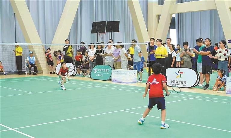 ▲500余名羽毛球小将齐聚茅洲河体育艺术中心拼搏。