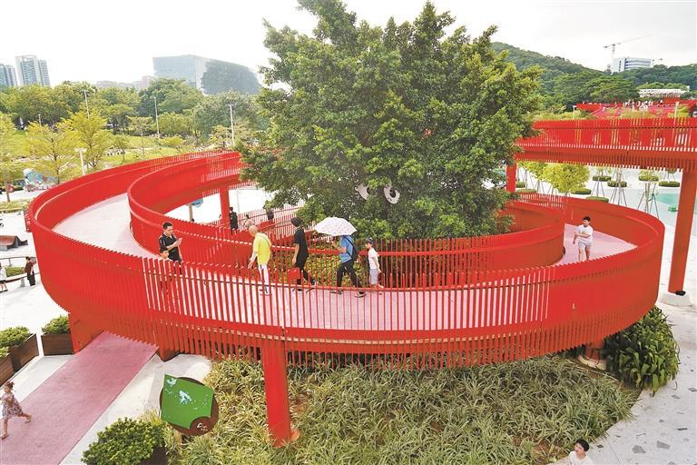 ▲游客游览虹桥公园。