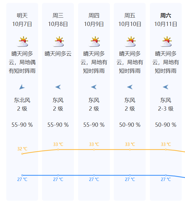 确认了今晚能看到月亮之后,再来关心一下未来几天的深圳天气吧,会不会对大家返程造成影响呢?一起来看看具体预报