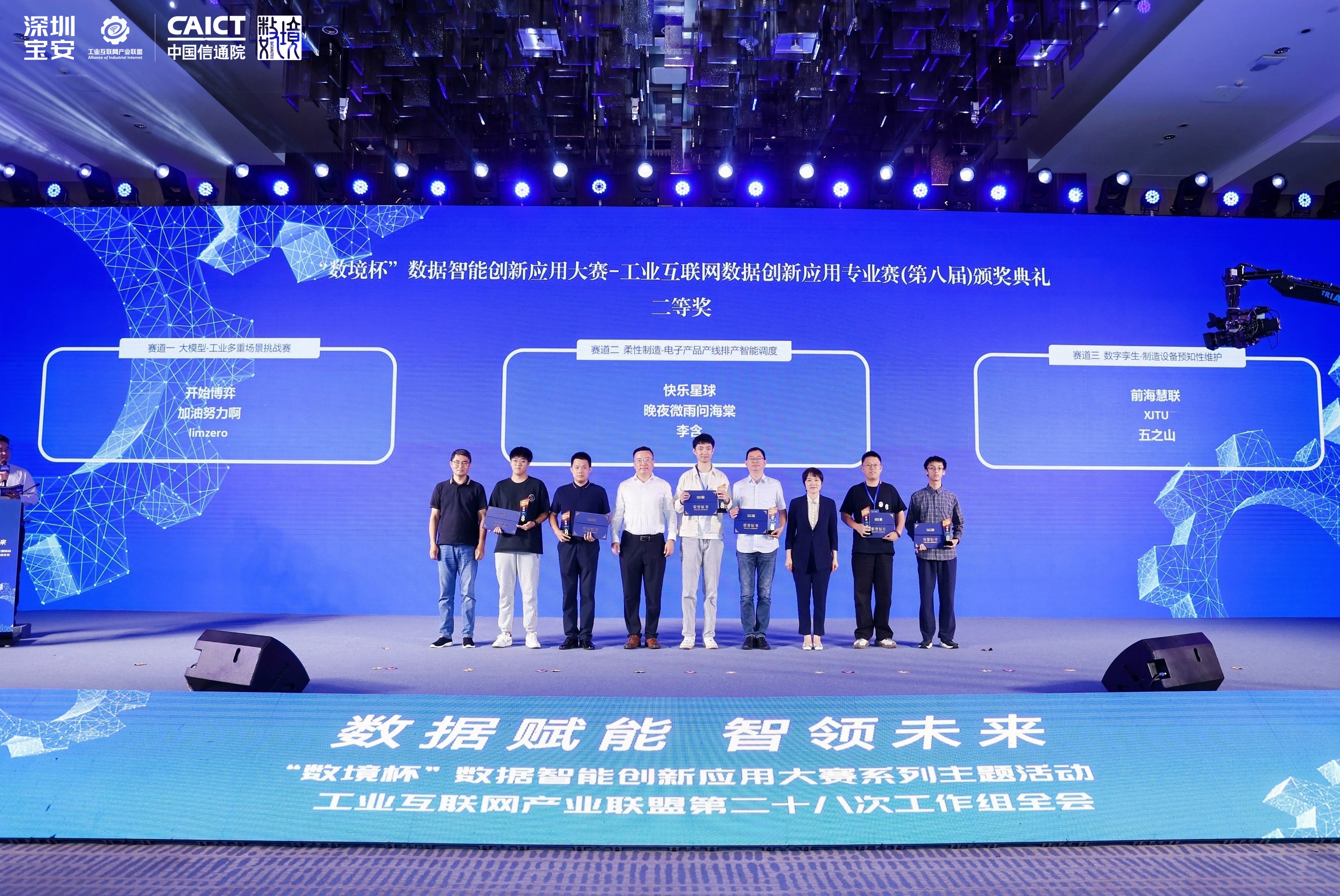 大赛颁奖环节同步举行。经过六个月的激烈角逐,本届大赛从全国2700余支参赛队伍中评选出一、二、三等奖共27支优胜团队。工业互联网数据创新应用大赛是中国信息通信研究院举办的“数境”系列品牌赛事,至今已成功举办八届,2020年落户宝安,累计参赛人数超过5万人,挖掘了一批以应用实践为导向的复合型人才队伍,为制造业数字化转型营造出良好创新生态。