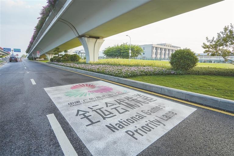 ▲从深圳宝安国际机场出发,沿途设有全运会优先道。