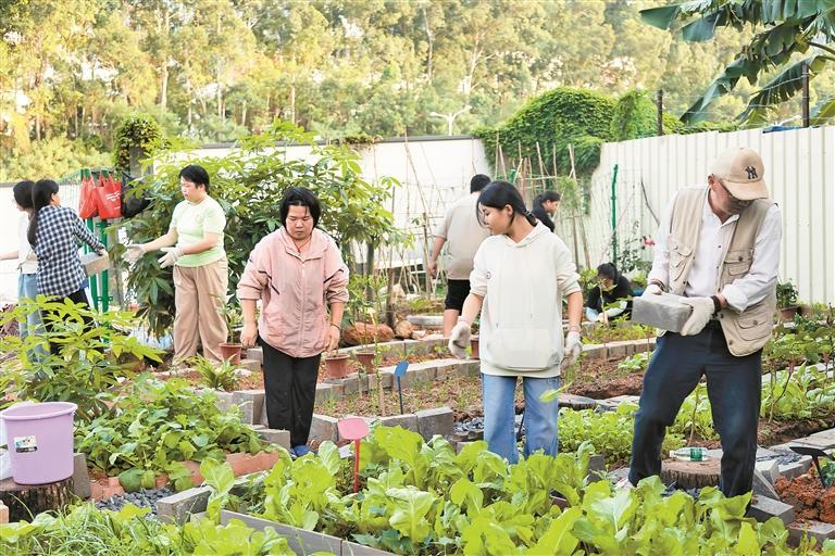 想法一经提出,便得到了热烈响应。中国二十冶梅观高速项目部、常鸿兴园林绿化有限公司等爱心企业主动提供开荒填土的设备与物资,物业团队保障用水、提供安全巡防,党群社工发动十余名居民化身“小农人”,亲手翻土、播种、浇水。项目共吸引8家单位参与共建,种植蔬菜花果20余种,一个绿色亲邻阵地就此诞生。