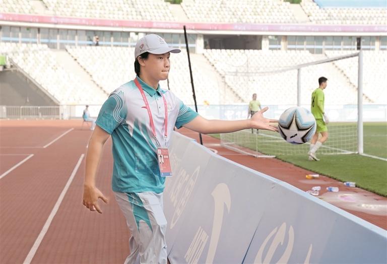 赛场内,身着青绿的“小海豚”用专业之姿,为竞技赛事保驾护航。“您好,检票口请往这边走”……自10月14日起,十五运会U18男足决赛阶段赛事在宝安体育场举行。300名身着统一服饰的“小海豚”志愿者忙个不停。从微笑引导运动员入场,到耐心为观众检票,给行动不便的观众提供帮助;从拉绳、收绳、捡球、抛球,到临时应变处理突发情况……他们那专业而充满温情的服务,成为赛场的一道青春风景线。
