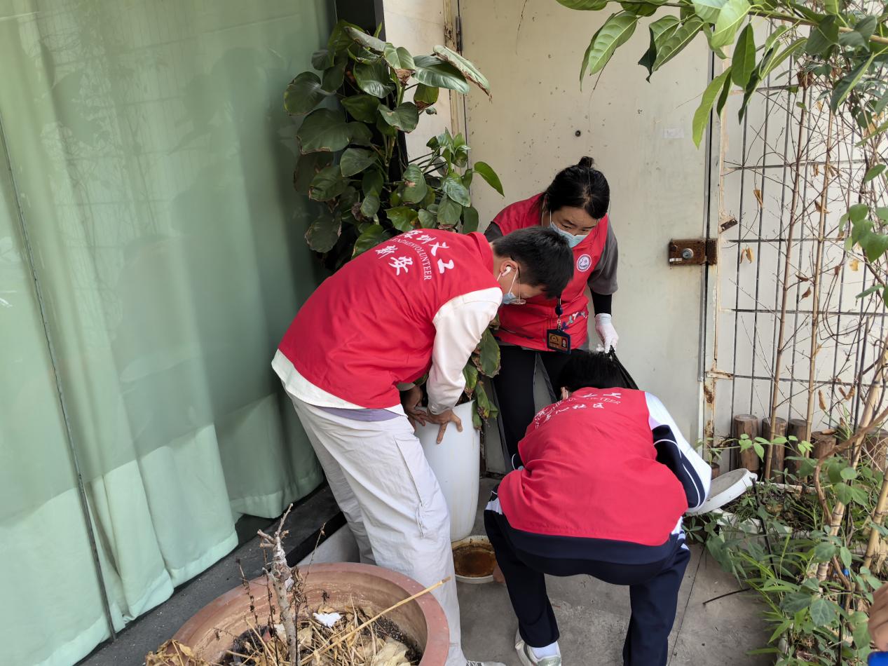 清扫过程中,志愿者们不怕脏累,有的弯腰俯身,蹲在绿化带中拨开枝叶夹取隐藏垃圾;有的提醒居民及时清理家中花盆托盘、废弃瓶罐等易积水容器,引导居民共同参与防蚊环境维护,从源头减少蚊虫孳生环境。经过数小时清理,社区道路无杂物堆积,绿化带与排水沟环境清爽,公共区域焕然一新。