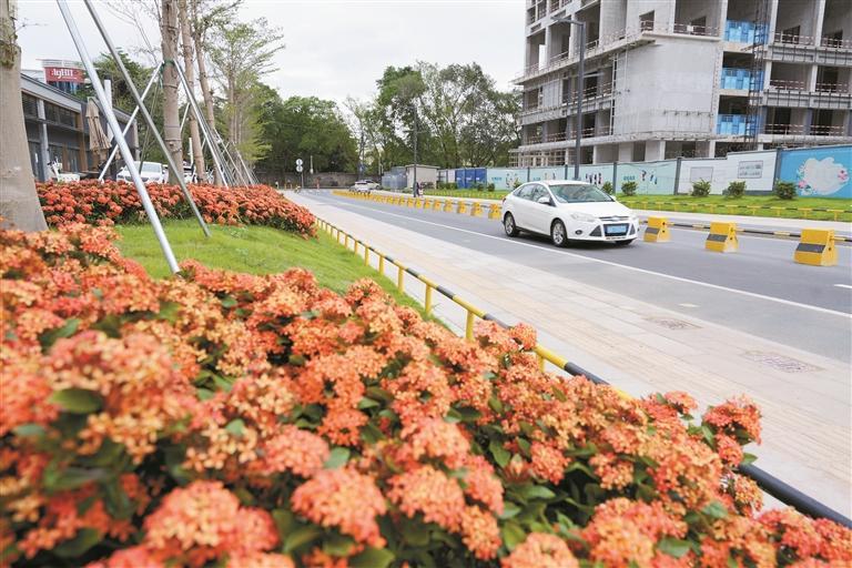 ▲浪祥路沿线鲜花怒放、绿植葱茏,路面平整洁净。