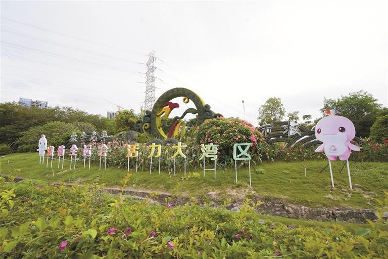 ▲从沈海高速下来进入龙华,沿途精心设计的欢迎花坛马上引入眼帘,十五运会和残特奥会吉祥物“喜洋洋”“乐融融”伫立其中。