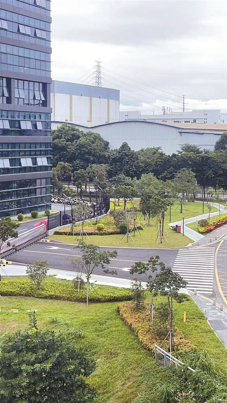 ▲顺络电子研发制造厂区东侧铺设人行道和园路,让员工饭后有了散步的地方。