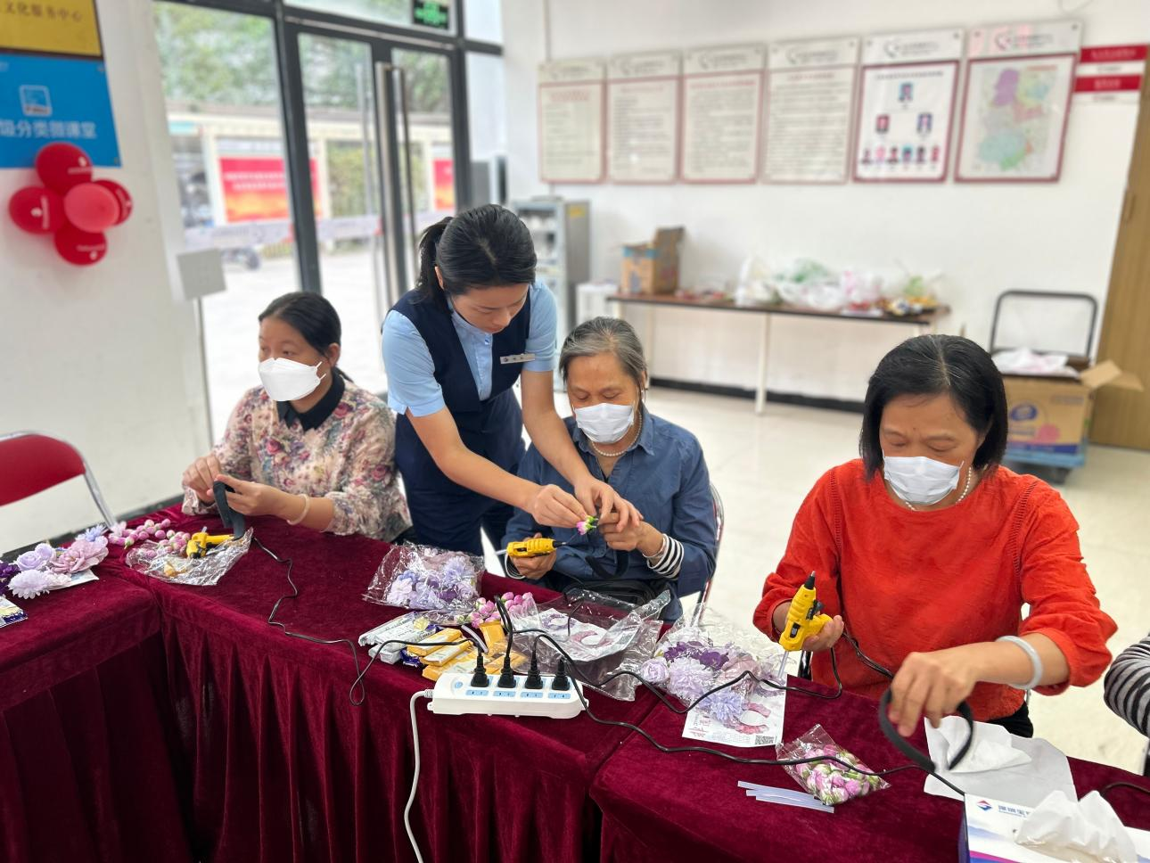 为传承非遗文化,让传统美学融入现代生活,深圳宝安桂银村镇银行联合龙平社区,开展了一场别开生面的簪花DIY活动。活动现场,老年居民们在各色花卉材料中精心挑选、巧妙搭配,原本零散的花材,在老年居民们的打造下,逐渐变为独一无二的簪花发箍。通过簪花发箍DIY活动,不仅让非遗文化在社区绽放新彩,更切实提升银发长者的获得感和幸福感。