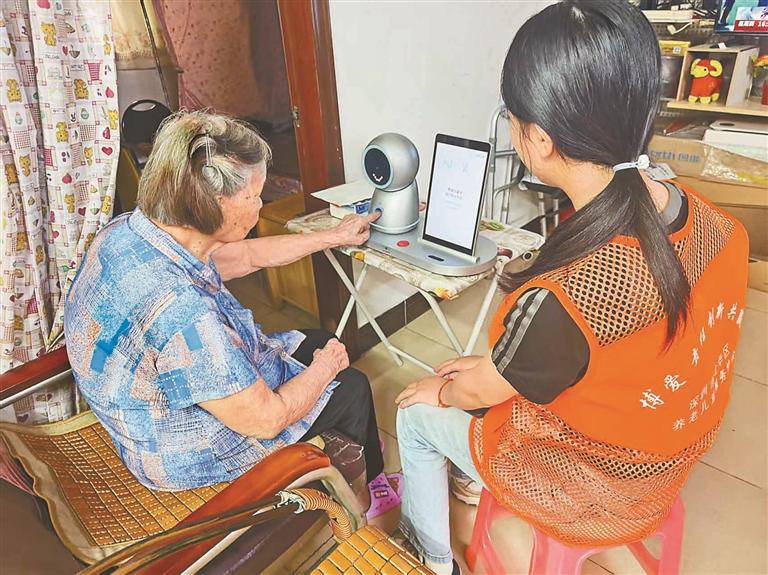 在龙华区,这样的智能终端正不断丰富:智慧拐杖内置定位和呼叫功能,老人出门无忧;卫生间安装紧急拉绳,跌倒时一拉即可求助;健康监测仪实时上传血压、心率数据,社区医生随时跟进……科技的温度,正悄然融入老人生活的每个细节。