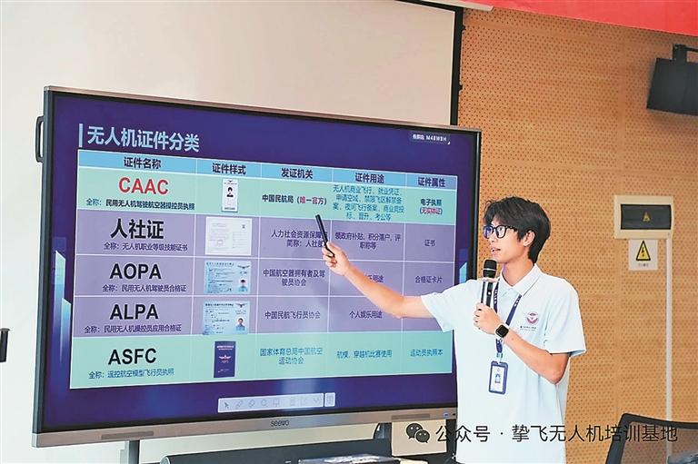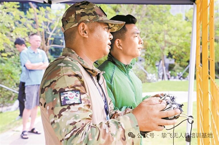 挚飞全球无人机教官手把手教学员操控无人机。