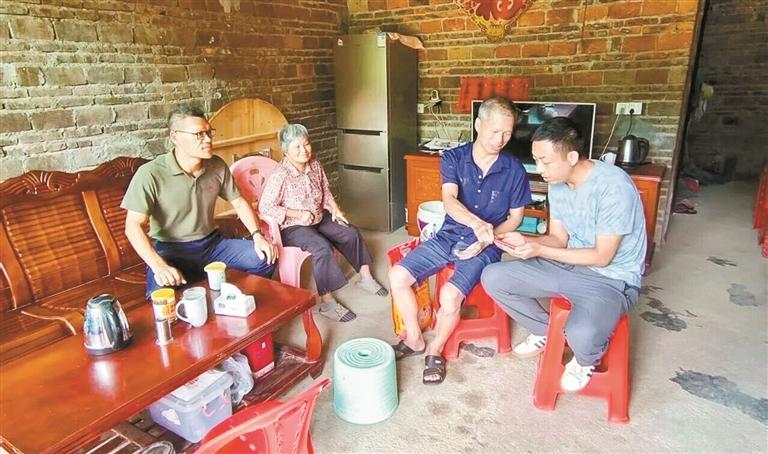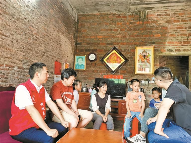 黄欢喜(左一)与星曙光志愿者协会到苏区镇困难家庭入户慰问。