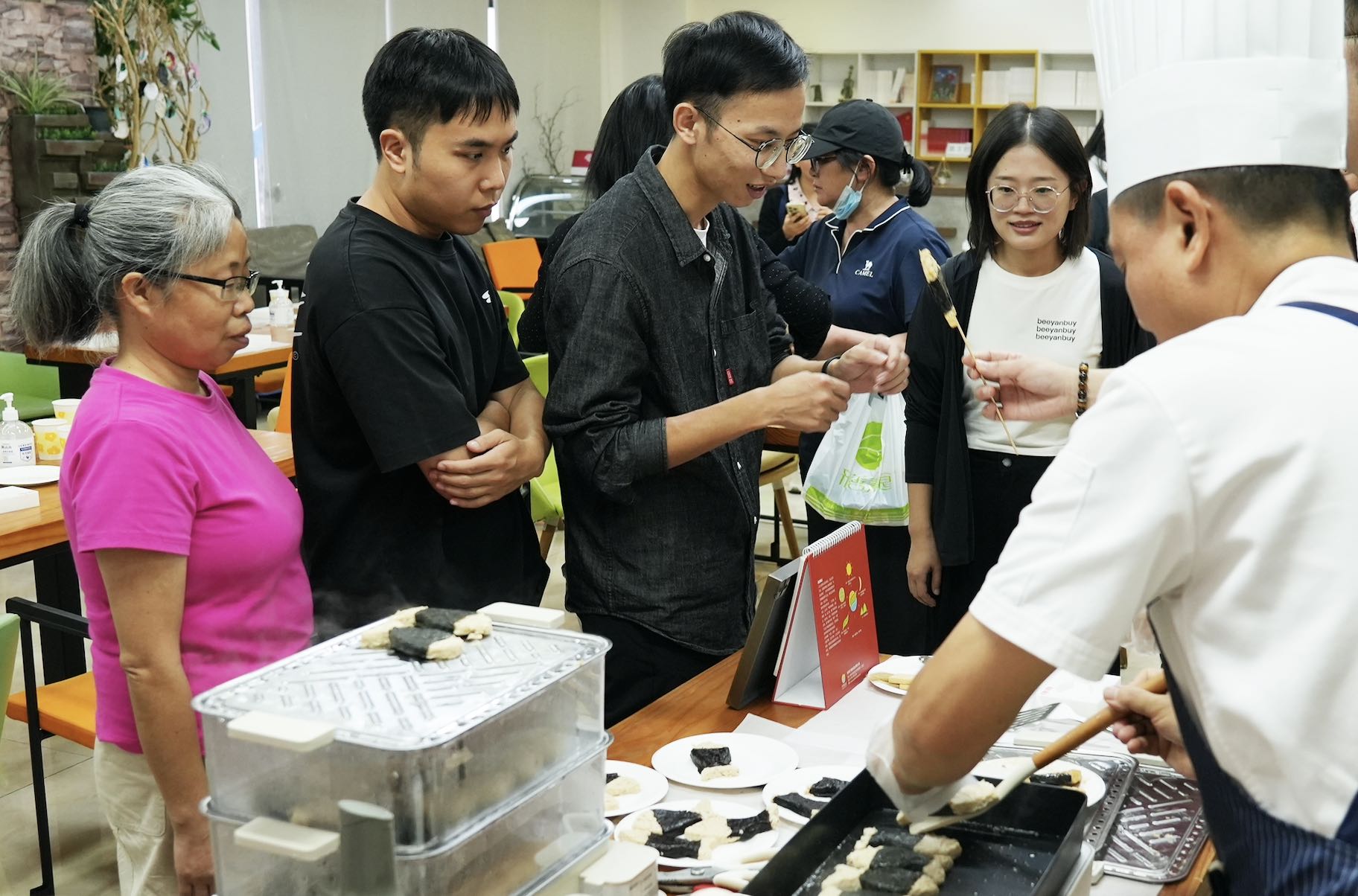 “有艺”互动环节人气高涨,“小素鱼”手工制作体验成为全场焦点。在李军的悉心指导下,众多市民尤其是青少年亲身尝试食材搭配、模具操作等基础技艺,真切感受到传统手艺的精妙与不易。手工制作区、品鉴区排起长队,大家踊跃参与、相互交流,现场氛围热烈融洽,这种“可学、可玩、可体验”的模式,打破了非遗“高高在上”的刻板印象,让其成为人人可参与、可分享的“活”文化。