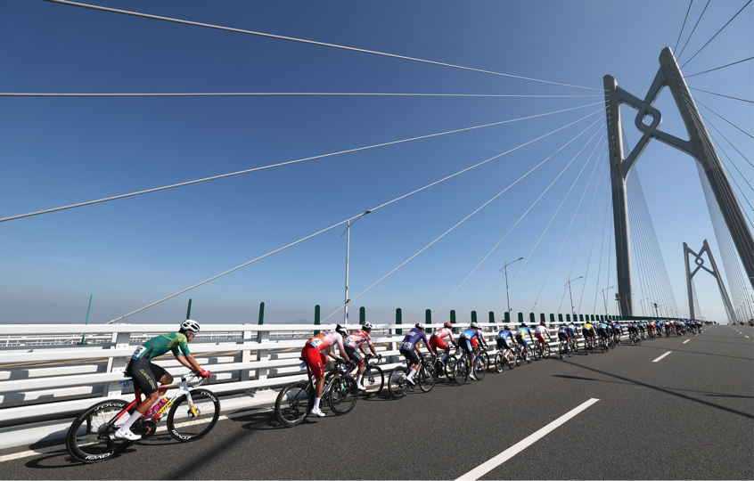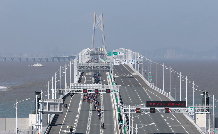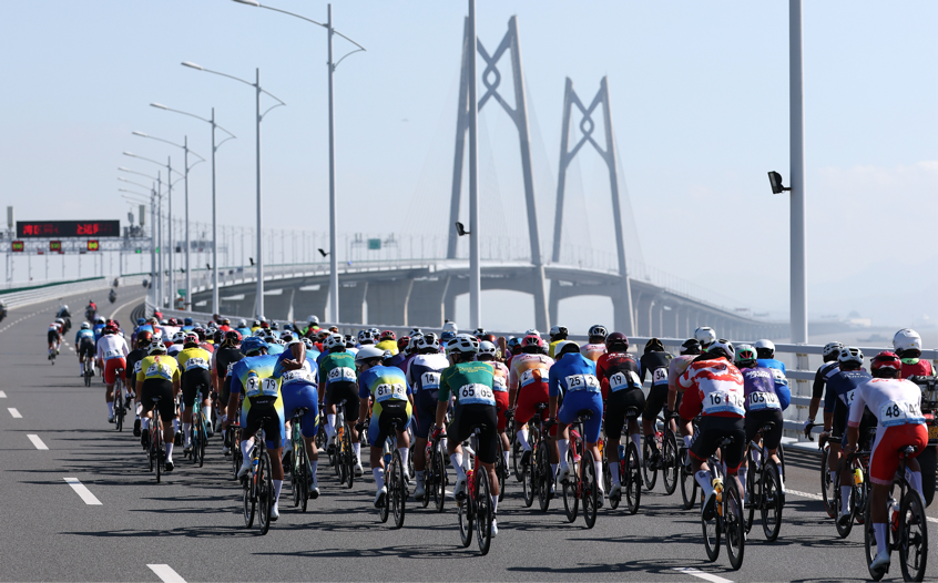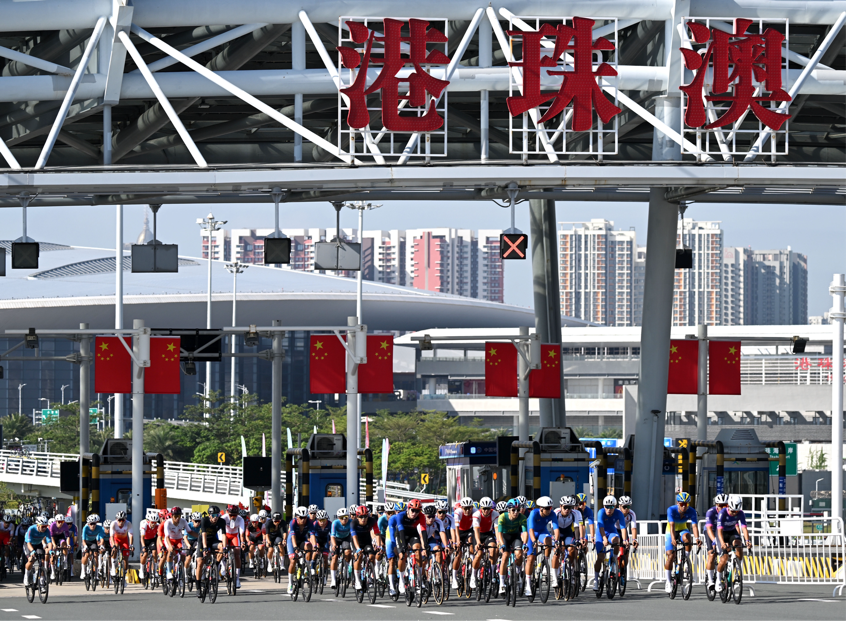 这一天,全运史上首个横跨粤港澳三地的跨境自行车赛鸣枪开赛,赛道从珠海博物院前疾速展开,穿海跨桥、连城入境,像把粤港澳三地系在同一条紧绷的线。