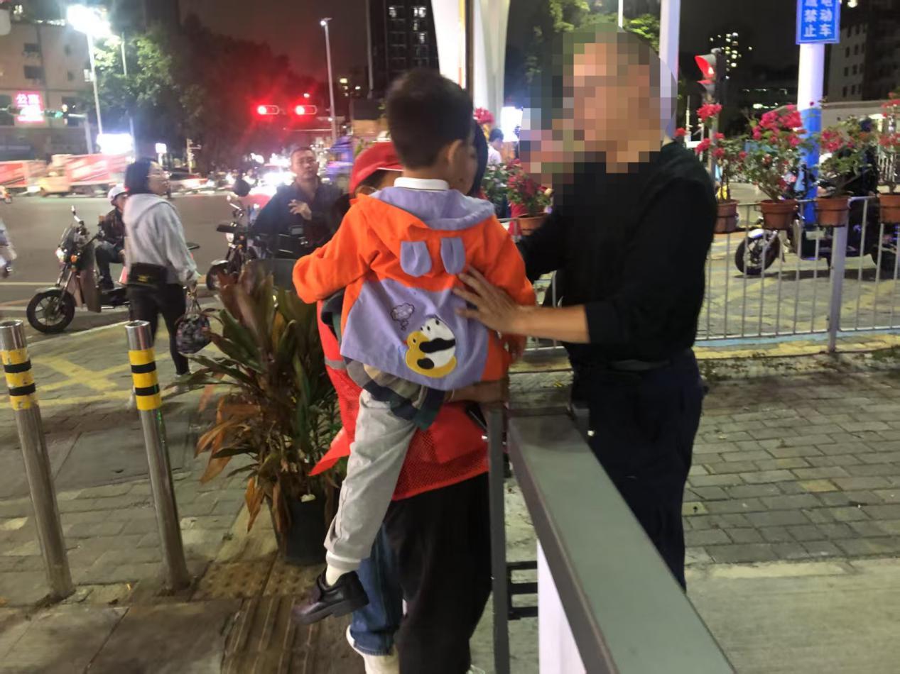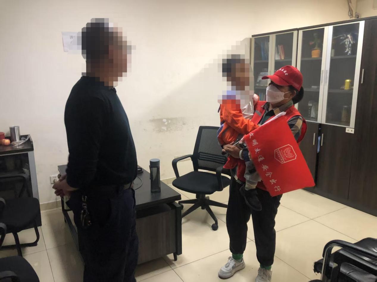 孩子提供了父亲的电话号码,志愿者立即尝试联系,却发现号码有误,多次拨打均未能接通。为确保孩子安全,避免发生意外,两名志愿者当机立断,决定将孩子送至就近警务室寻求帮助。“孩子一个人在外面太危险,我们必须尽快帮他找到家人。”陈桂兰说道。二人小心牵着孩子的手,快步前往警务室。抵达警务室后,志愿者向值班民警说明情况,恰巧民警告知:“刚才有位家长报警称孩子在地铁口走失,描述的特征和这孩子很像!”民警随即通过报警信息联系孩子父亲,经过身份核实,确认正是这名迷路孩童的家长。不到20分钟,孩子父亲匆匆赶到警务室,看到孩子安然无恙,激动地冲上前将其紧紧抱住,眼眶泛红。“太感谢你们了!要不是你们及时发现,我都不知道该怎么办……”孩子父亲握着志愿者的手再三致谢,言语间满是感激。陈瑞妹、陈桂兰笑着回应:“这是我们应该做的,孩子安全就好。”