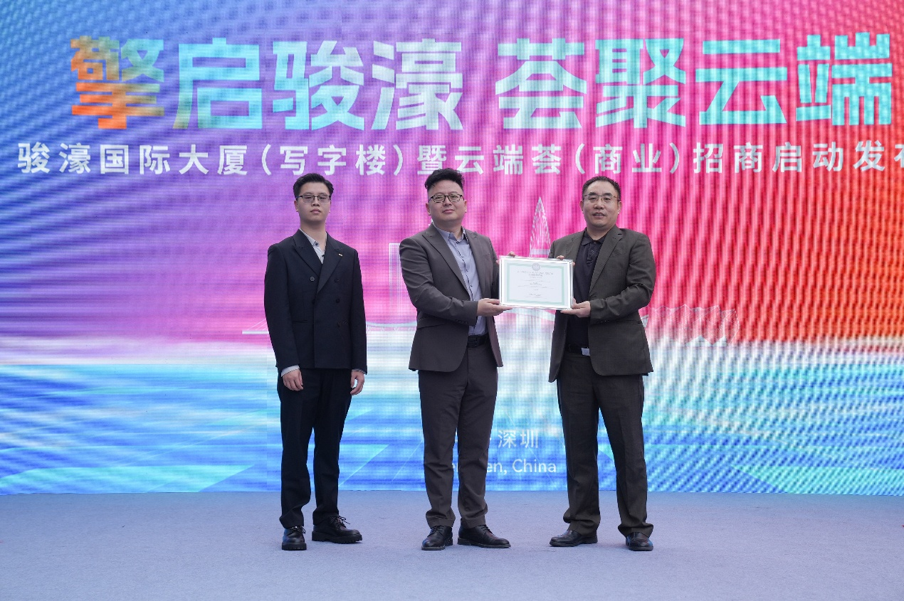 活动现场举行了隆重的授牌仪式,多项行业权威认证的颁发,彰显了项目在绿色建筑与商业运营领域的突出实力。美国LEED认证机构区域总经理郭庆锋为骏濠国际大厦颁发LEED银级认证证书,标志着项目在绿色环保、可持续发展方面达到国际认可标准;中购联理事长张琼则为骏濠·云端荟授予“中购联常务理事单位”及“2025社区商业卓越榜”两项荣誉,肯定了项目在社区商业领域的创新理念与发展潜力。一系列荣誉加持,为项目未来发展奠定了坚实基础。