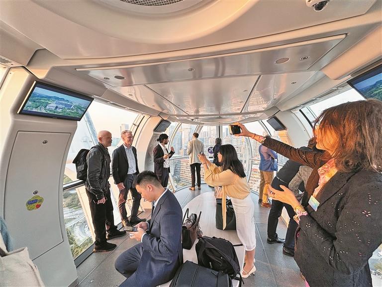 傍晚,代表团漫步宝安中心区,登上欢乐港湾“湾区之光”摩天轮,亲身感受宜居滨海城区的独特魅力。在缓缓攀升的轿厢中,宝安中心区的现代化图景一览无遗。宝安区投资推广署工作人员现场做起了推介官:“大家看到的企业,只是宝安机器人生态的一部分。我们拥有从微型电机、灵巧手、减速器到整机设计的完整产业链,任何机器人创意都能在这里找到落地的土壤。”