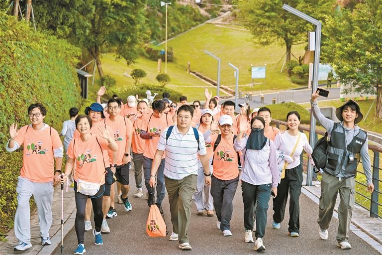 近日,玉塘街道在大雁山森林公园举办“穿林寻玉·雁岭徒步”活动。辖区居民、各界人才及新就业群体代表等近200人齐聚山林,在秋日美景中体验一场充满活力的户外之旅。