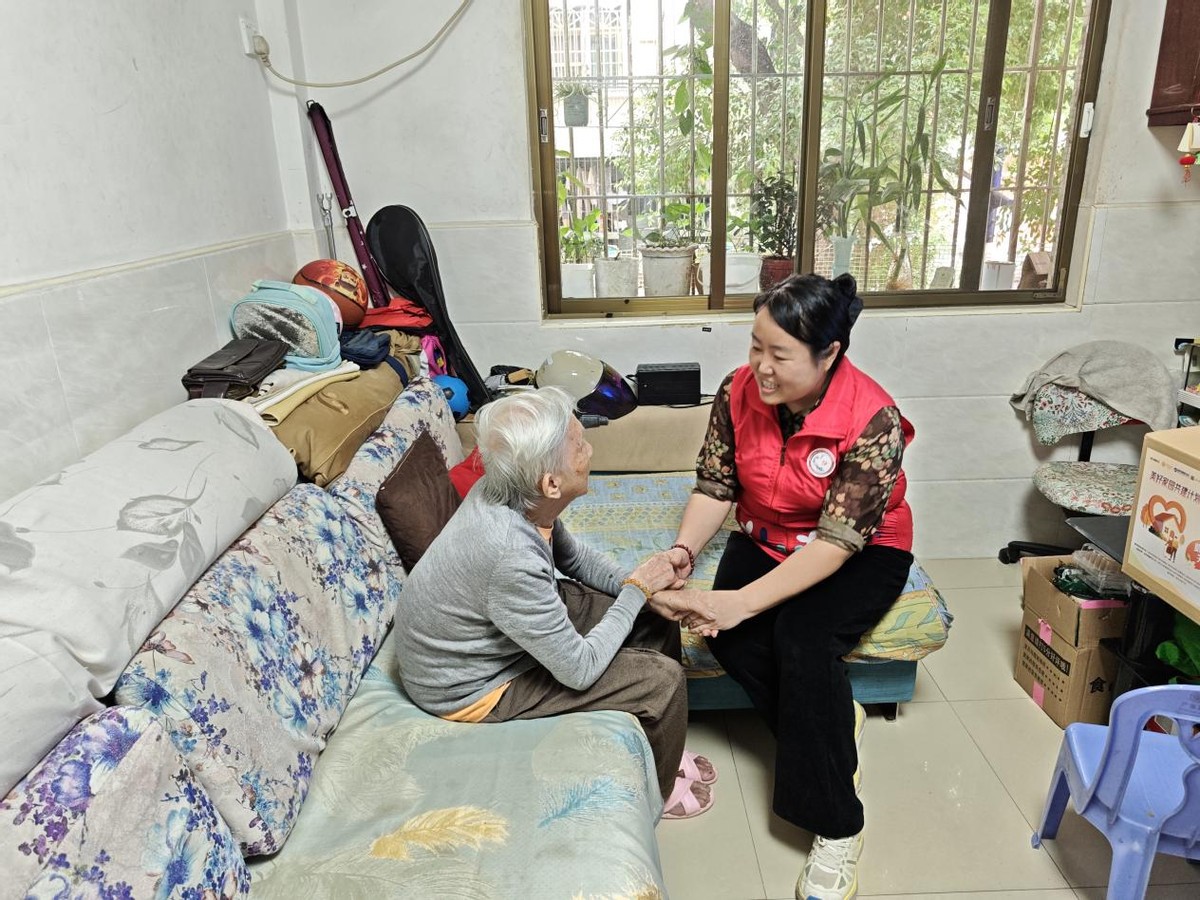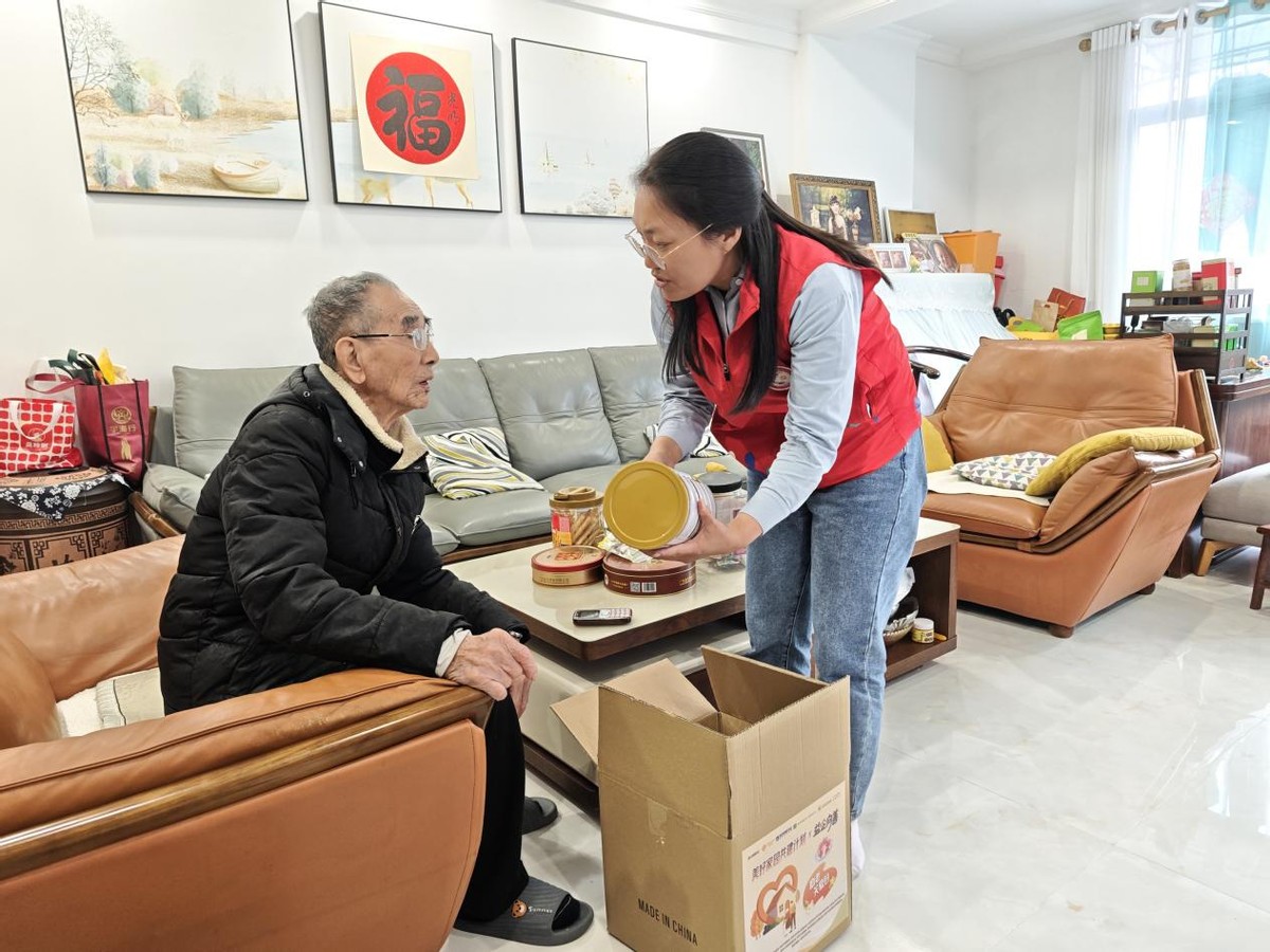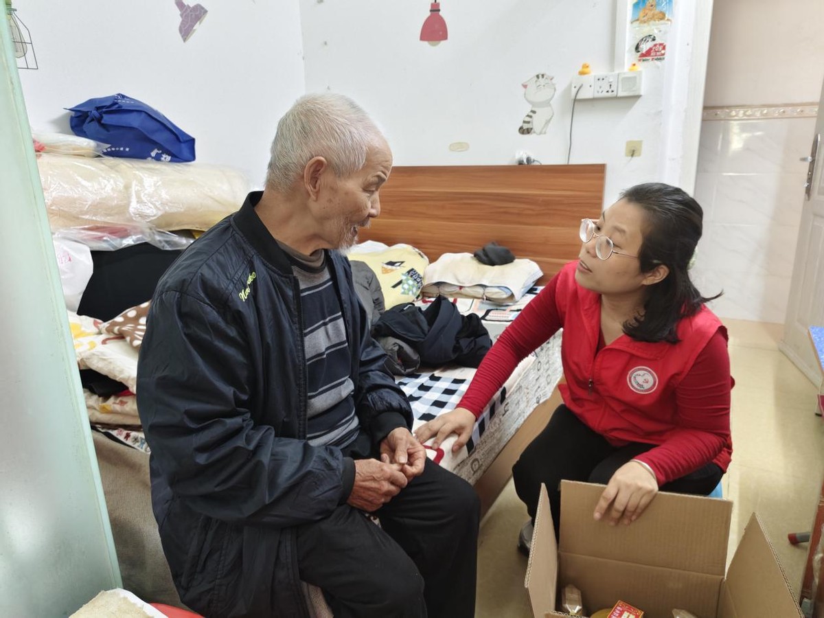 在入户探访时,社工和志愿者与老人们亲切交流,仔细询问他们的身体情况和生活状况,耐心倾听他们的讲述。交流中,社工还向老人介绍了社区的服务资源,提醒他们如果有日常需求,可以通过“益愿达”小程序在线下单,社区会及时安排人员提供帮助。
