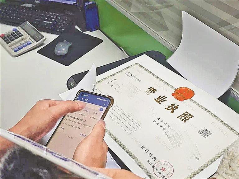 ▲执法人员扫描营业执照上的二维码进入企业。