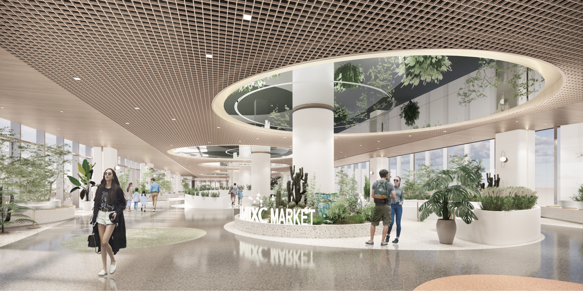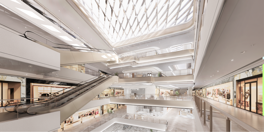项目由国际建筑事务所Benoy操刀设计,以“多首层”结构引导人流,提供更有“可逛性”的消费空间。其中:双层浪漫连廊“HOODWAY”:连接A、B两馆,打造烟火气与艺术感交融的空中市集;超5000㎡屋顶花园“HOODTOP”:以粉色与紫色风铃木营造“空中彩色绿洲”,融合表演、轻运动与社交功能,成为年轻人的城市客厅。